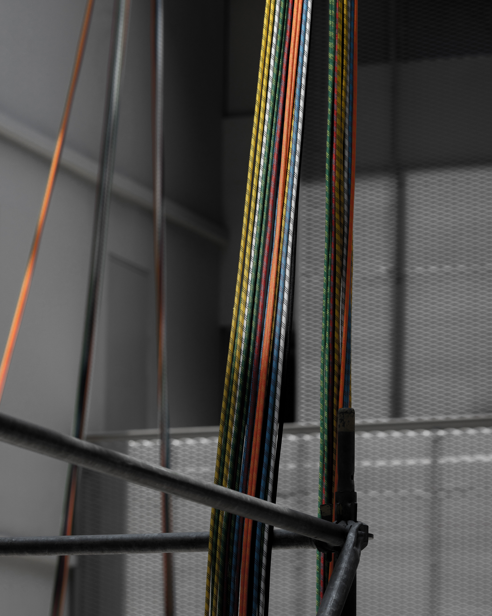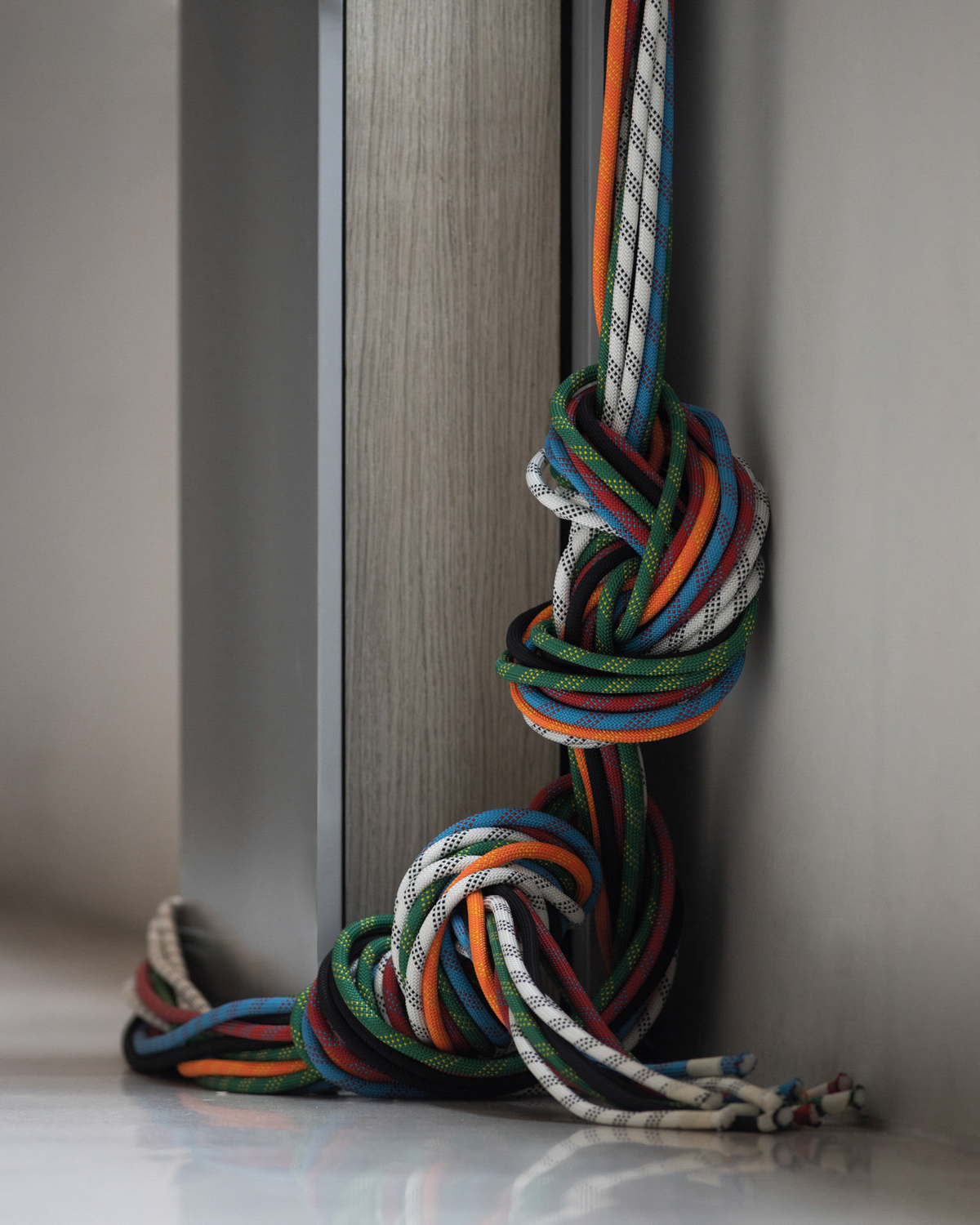 Recontextualised due to the occasion and space, Rope Chandelier creates the spirit of experimentation, accidents, failures, awaking a sense of verve that comes when creating the unknown.