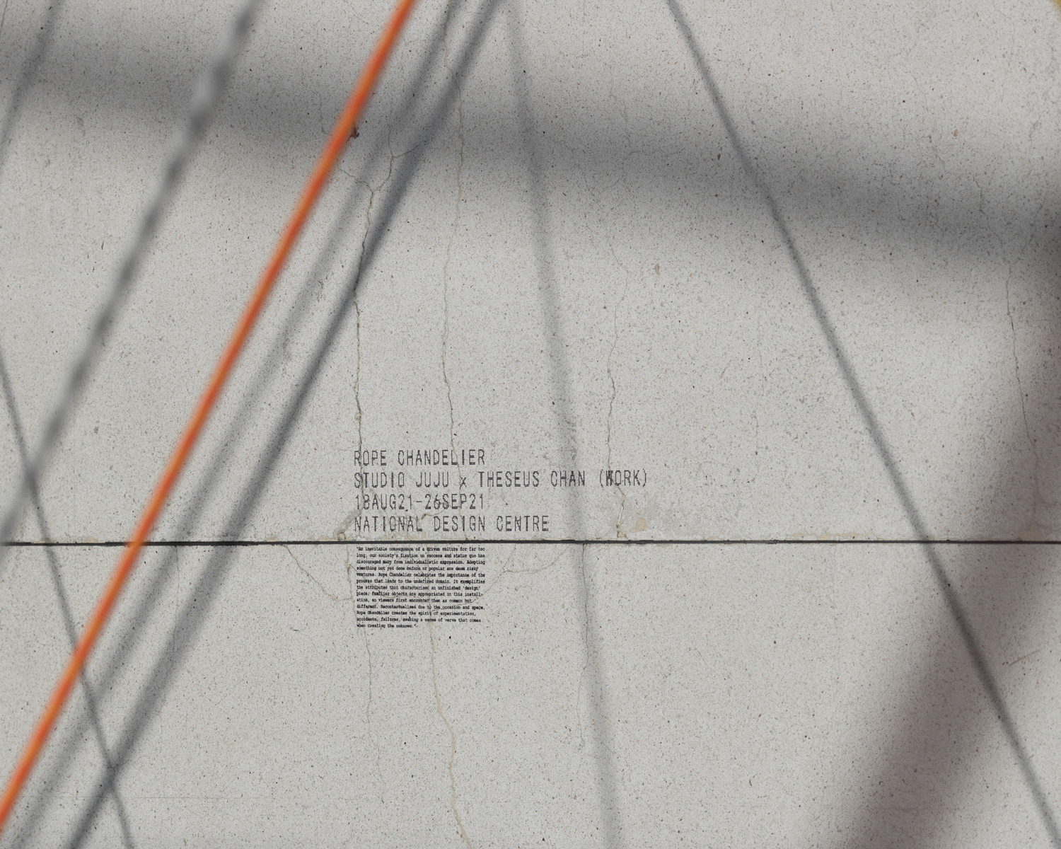 Rope Chandelier celebrates the importance of the process that leads to the undefined domain. It exemplifies the attributes that characterises an unfinished ‘design’ piece; familiar objects are appropriated in this installation, so viewers first encounter them as common but different.